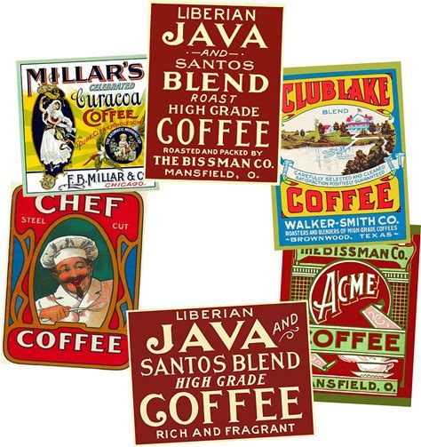 Coffee Can & Java Label Art Stickers, Kitchen Gift Set, 6 Big Colorful 4" X 3" Labels, Kitchen Storage Decor, Vintage Label Art Signs, S32